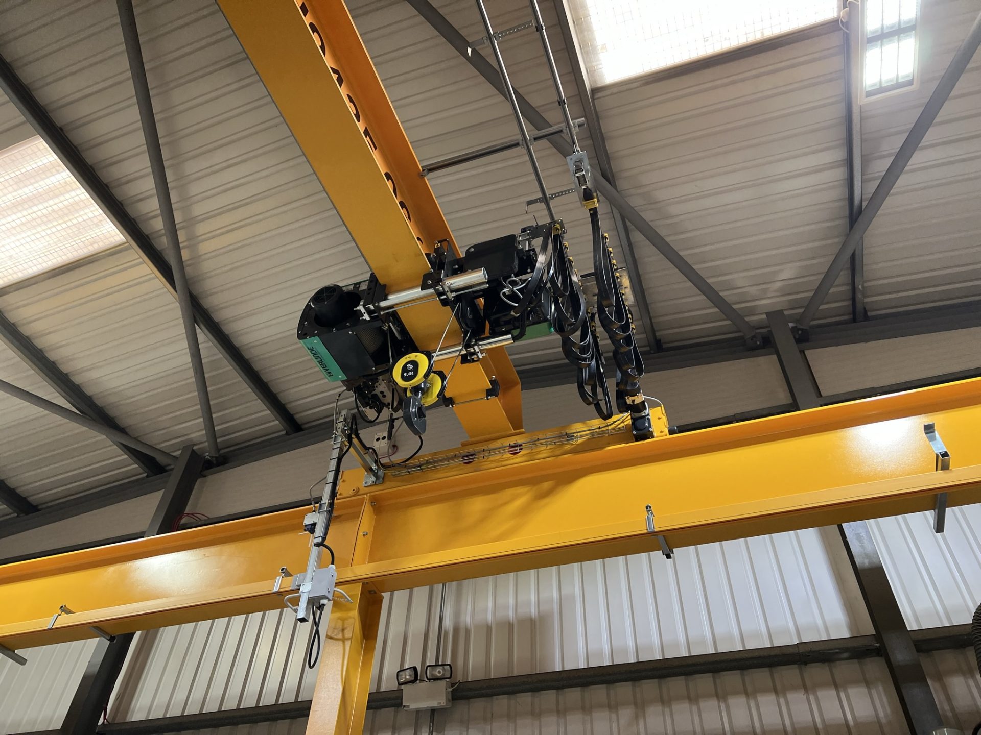 The Verlinde VT2 hoist provided dual hoisting speeds of 4 and 0.7 metres per minute, delivering true vertical lift via a 4 fall reeving arrangement. Cross travel speeds of 5 and 20 metres per minute and long travel speeds of 8 and 32 metres per minute were achieved through inverter controlled variable speed drives, allowing smooth and controlled movement of the load.