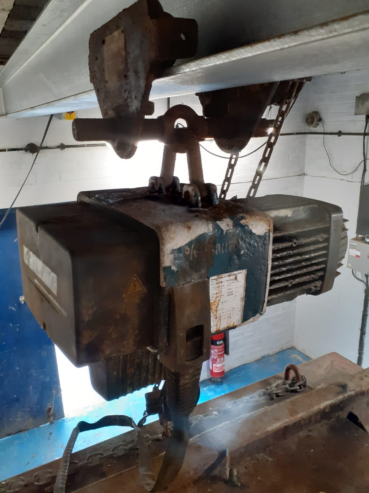 Hoist UK was subsequently appointed to supply a new electric chain hoist with geared travel trolley and flat cable power feeding system, including removal of the existing defective hoist and installation of the replacement unit.