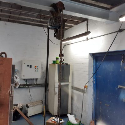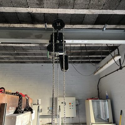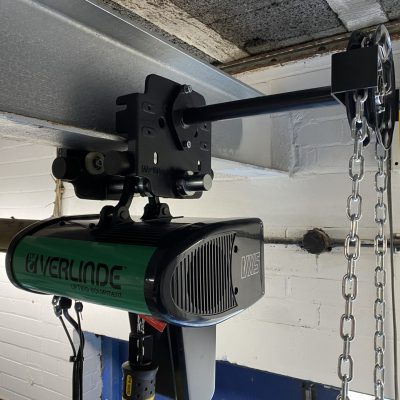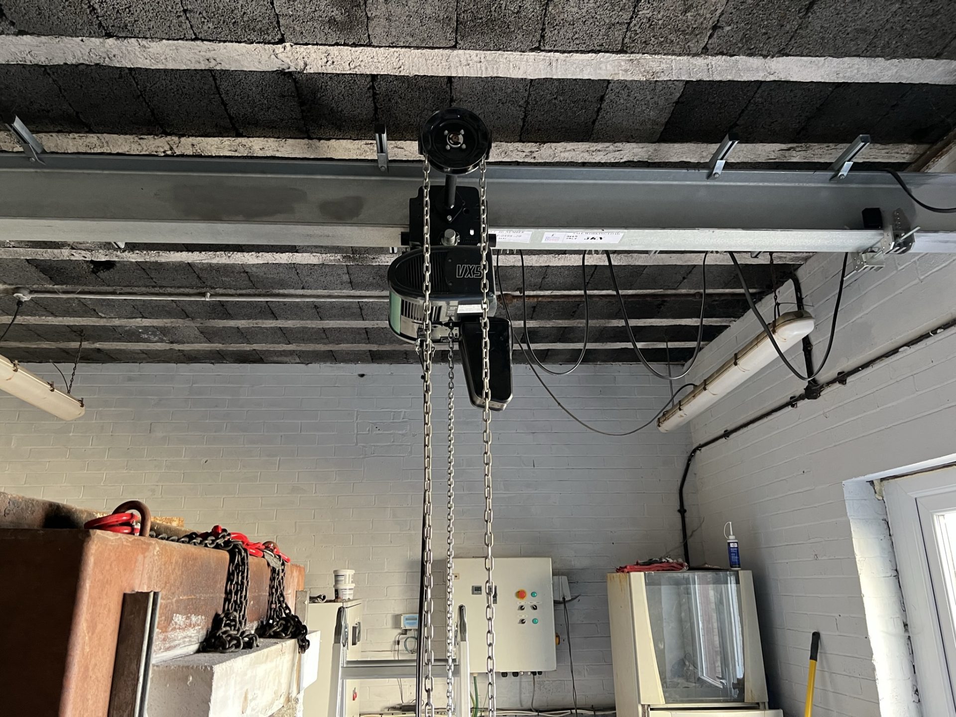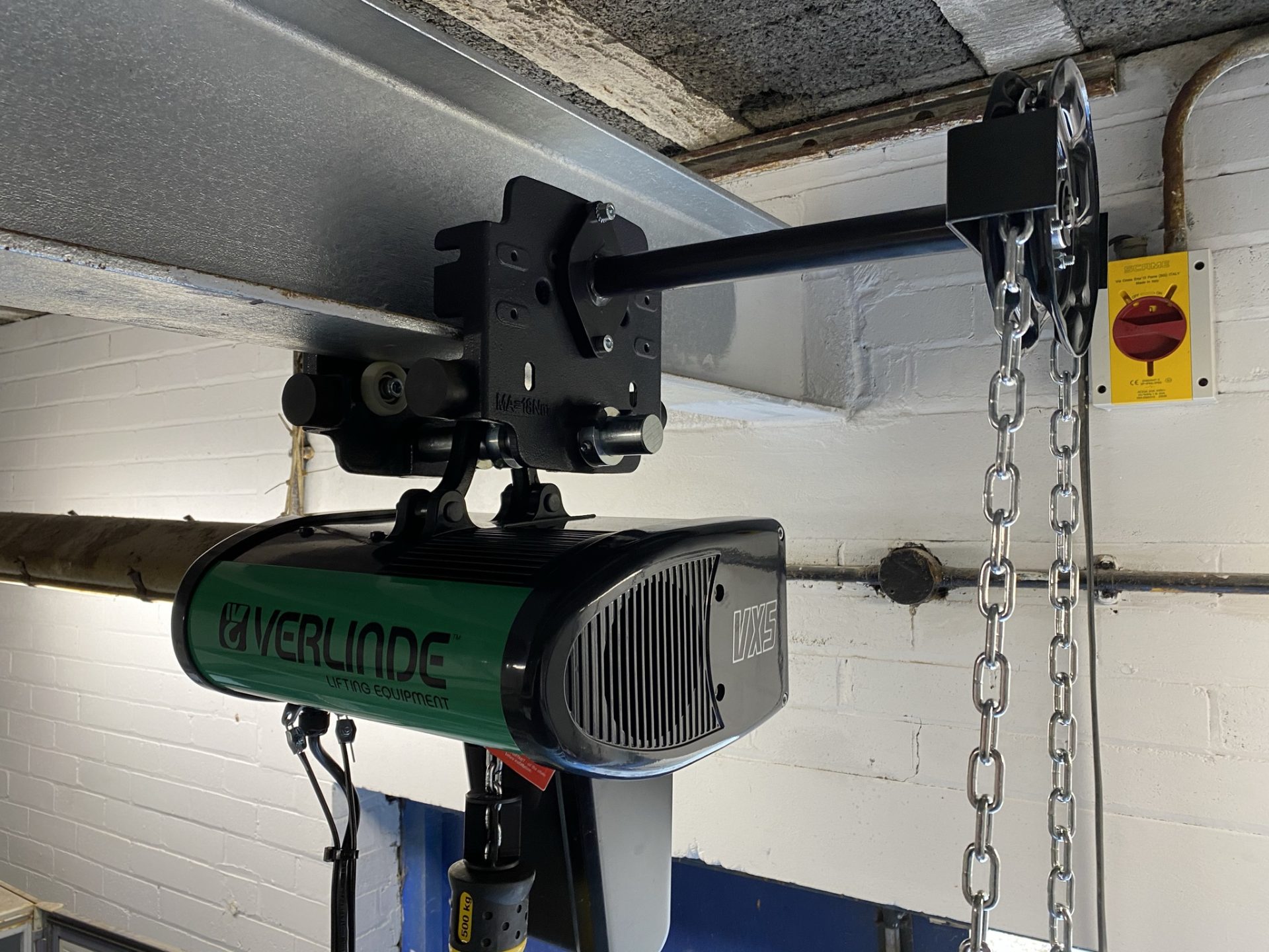 Hoist UK supplied and installed a 500 kg rated capacity Verlinde Eurochain VX electric chain hoist complete with geared travel trolley.